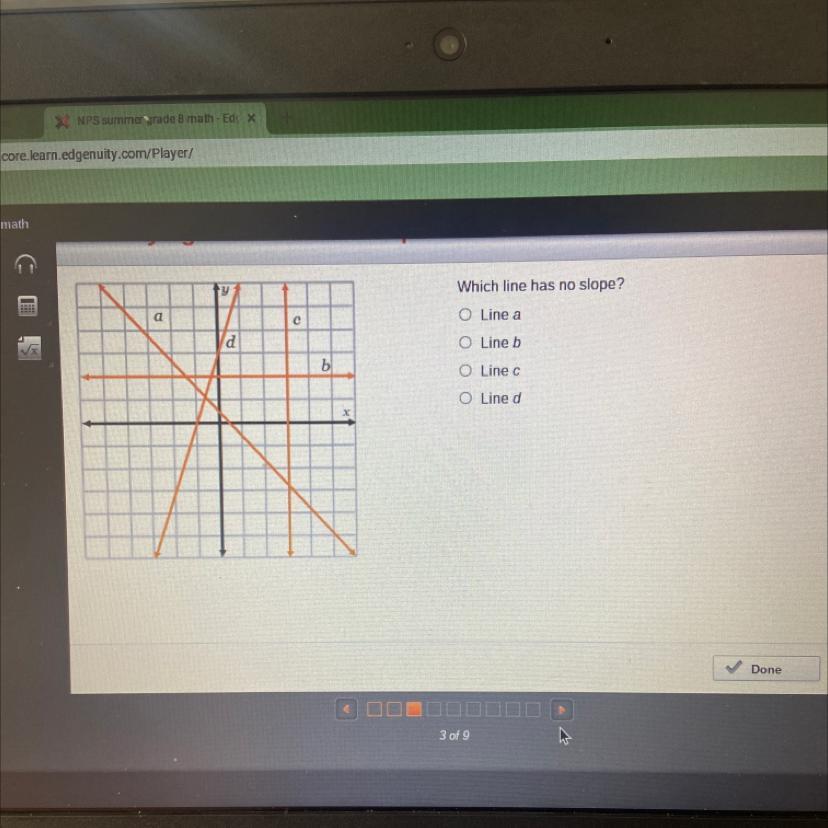 The answer would be C because perpendicular slopes are negative to opposite or (reciprocals) of one another.