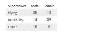 wing two-way table displays data for the sample of students who responded to the survey. How many students in the survey chose to fly as their superpower?