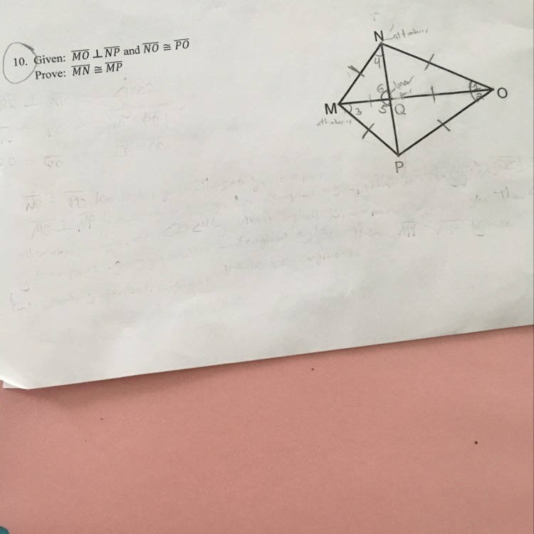 Given MO is perpendicular to NP and NO is congruent to PO prove MN is congruent to MP