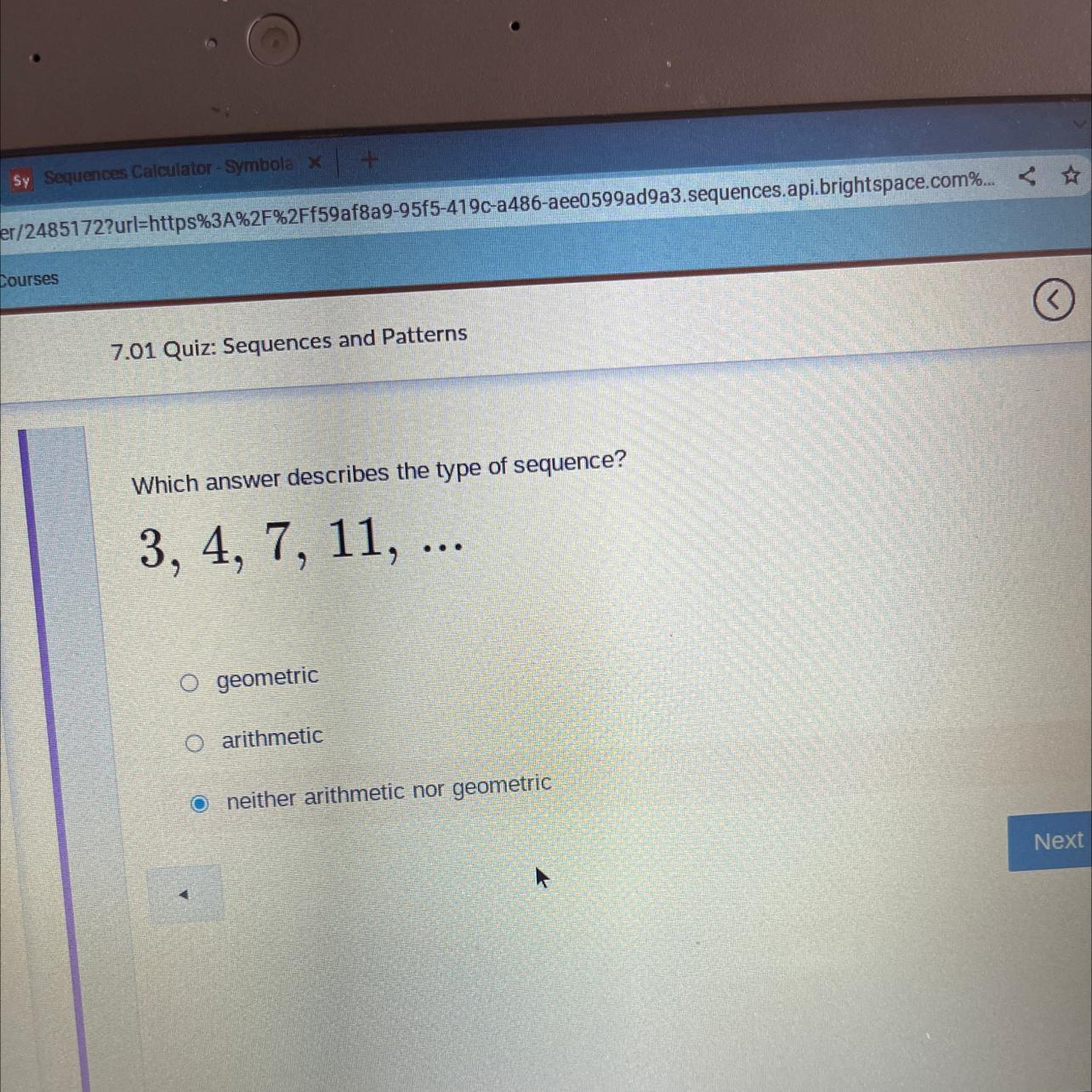 <u>Answer: Neither arithetic nor geometric</u>