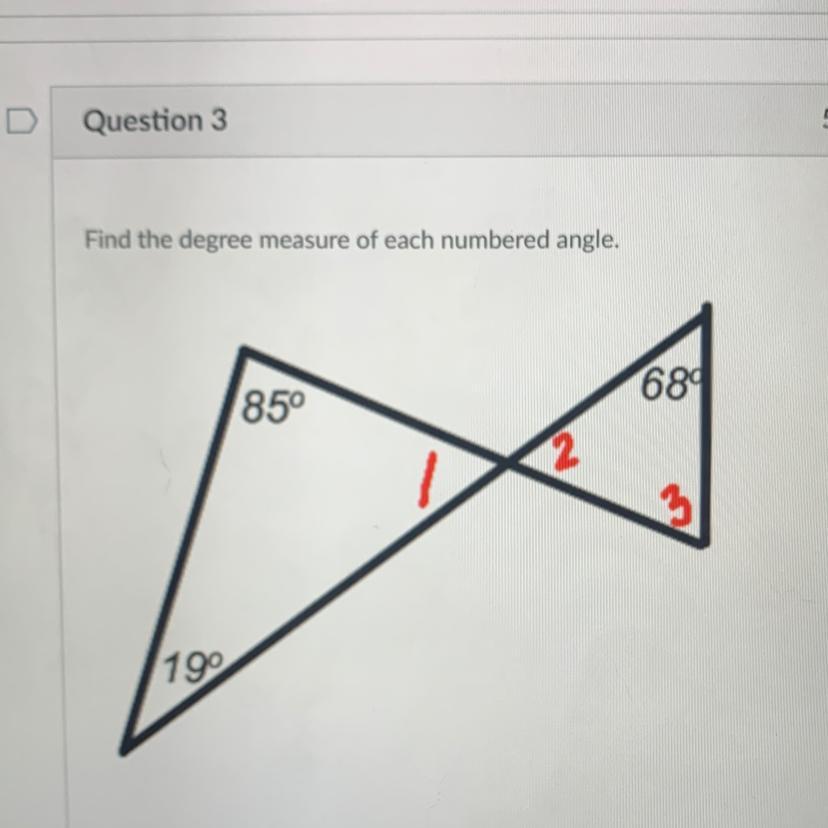 The sum of all the angles of a triangle always equals 180 degrees. Write down the difference you found when subtracting the sum of the two angles from 180 degrees. This is the value of X.