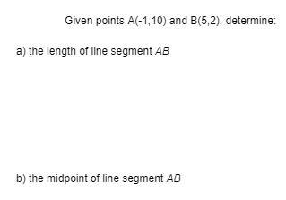 <u>Midpoint of line segment AB = (2, 6)</u>