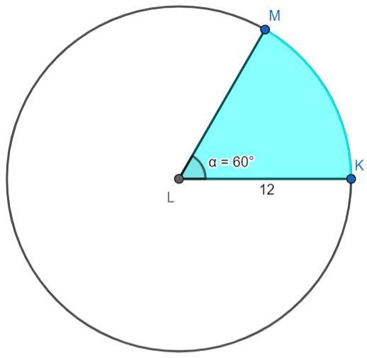 Given ∡KLM = 60°. The radius of the circle is 12 units.