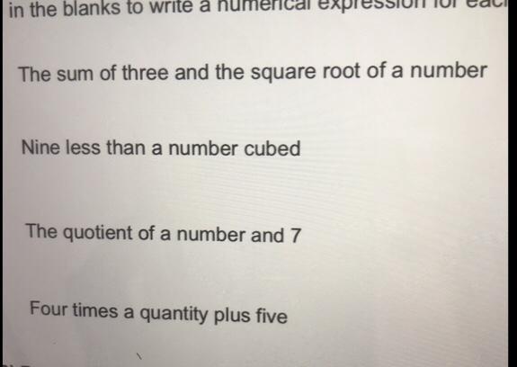 1.) The sum of three and the square root of a number.