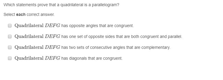 a.Quadrilateral DEFG has opposite angles that are congruent then it is a parallelogram.
