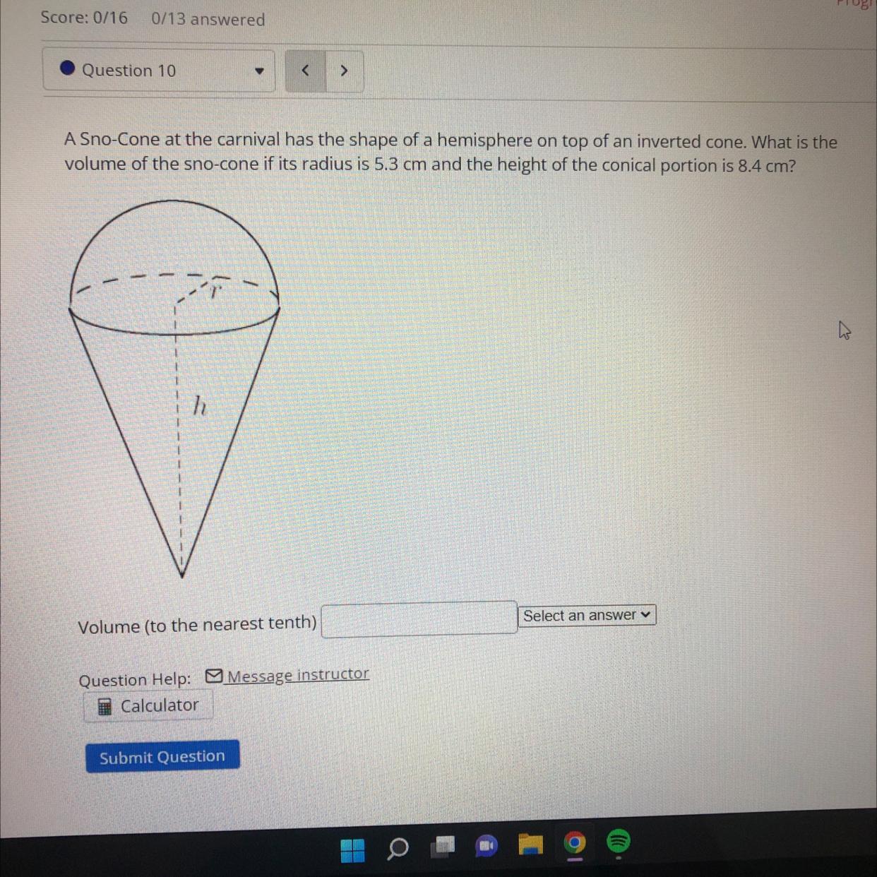 If we know that r = 5.3 cm and h = 8.4 cm, then the volume of the composite figure is: