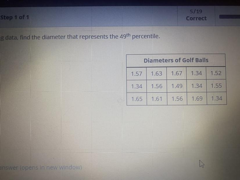 Using the normal distribution, the diameter that represents the 49th percentile is of 1.52 units.