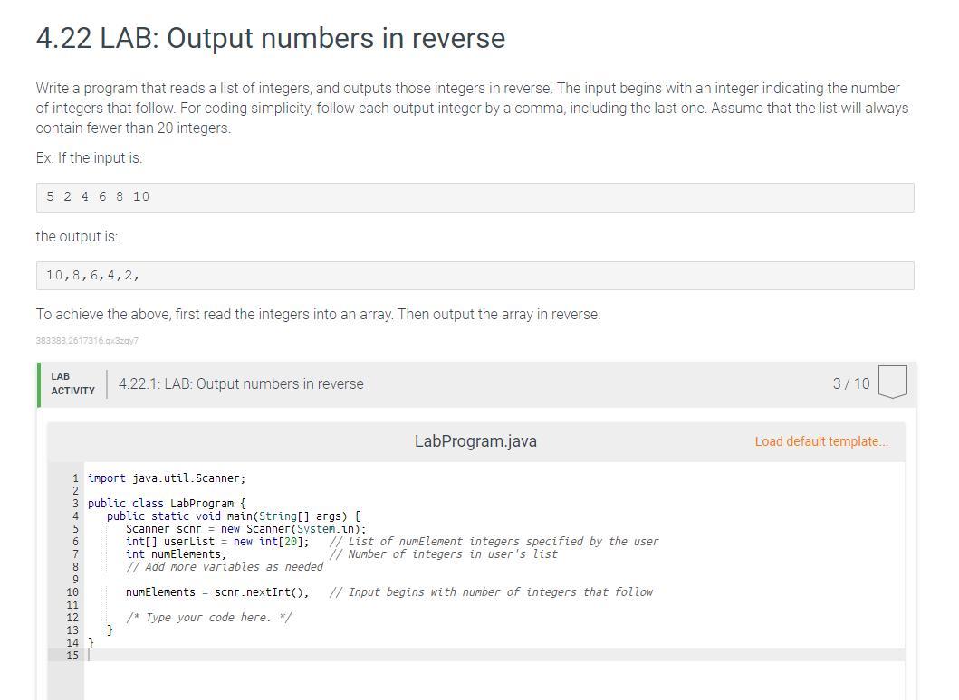 Using the computer language in JAVA to write a function code that output numbers in reverse
