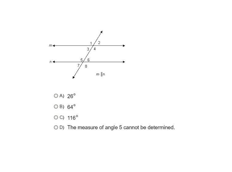 The degree measure of the angle labelled 5; m<5 = 116°.