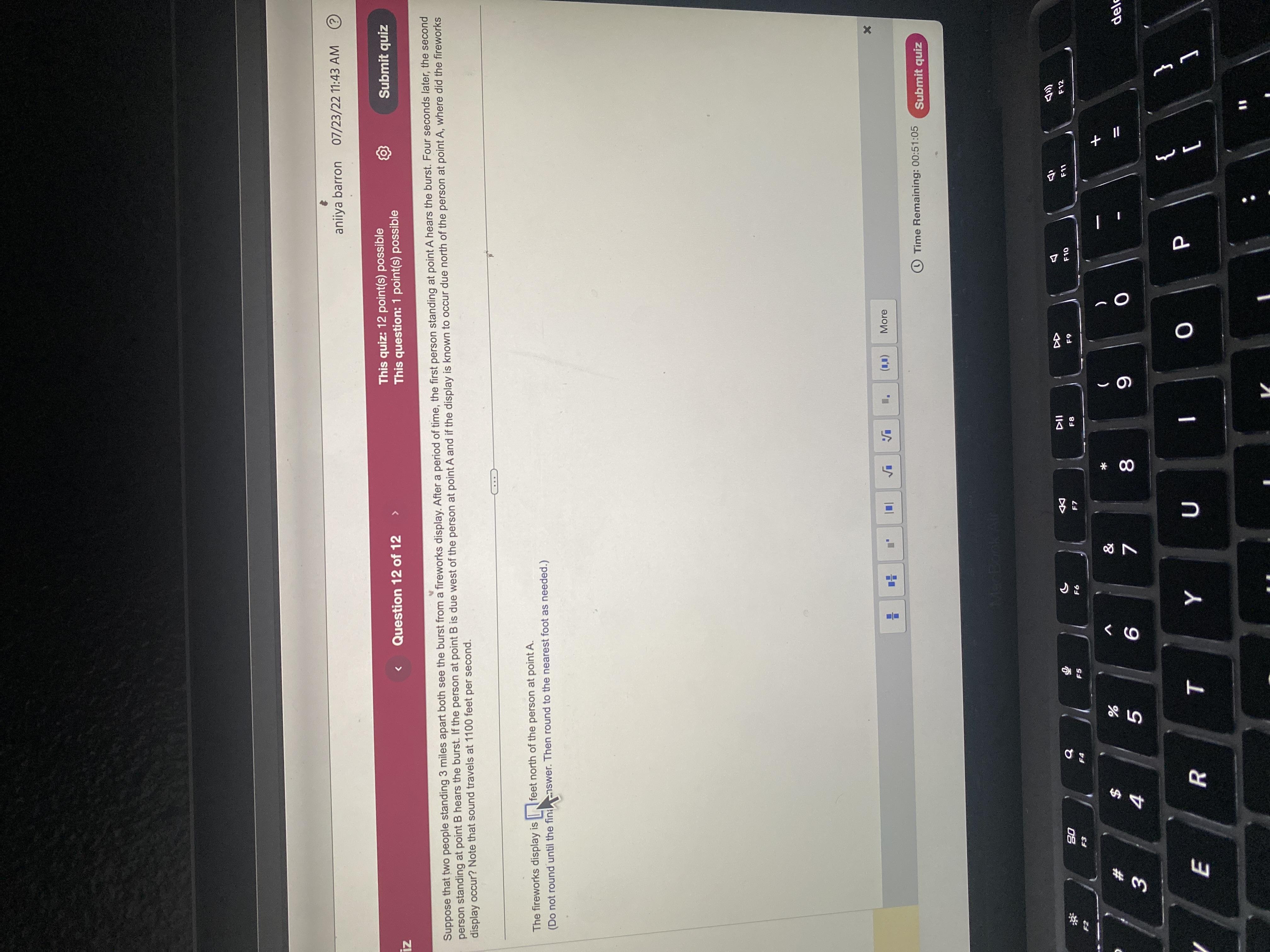 The fireworks display occur at 550.331 ft.