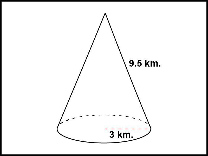The total surface area of the cone = 117.8 km²