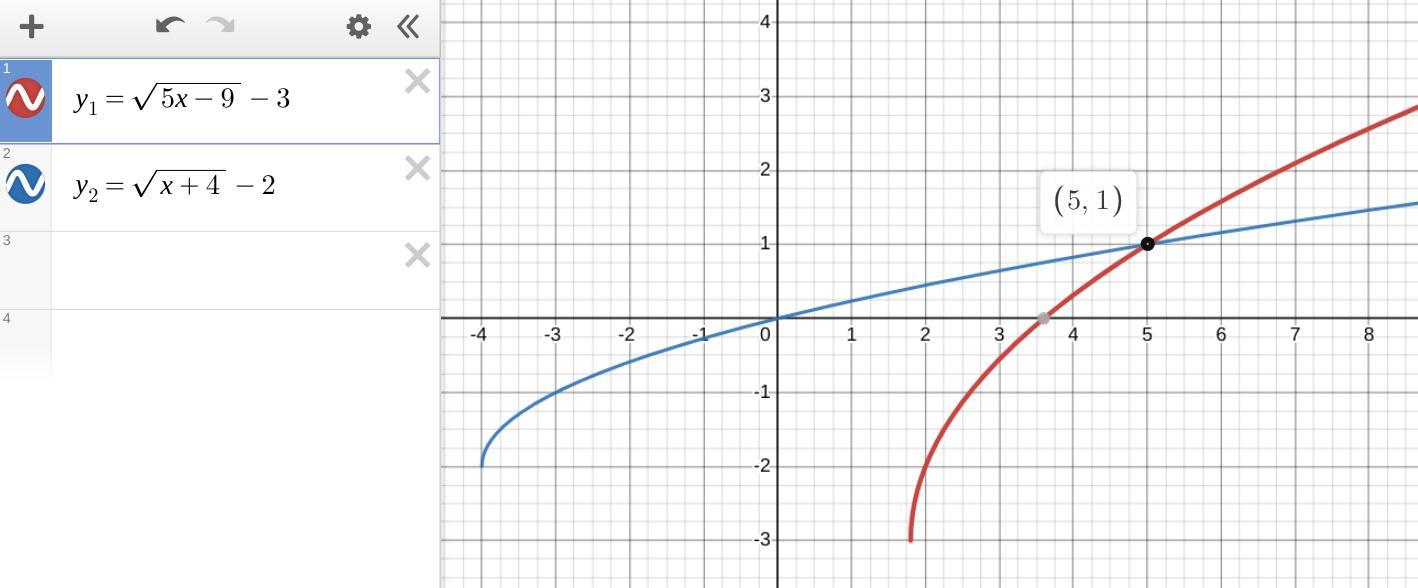 √(5(5) -9) -3 = √(5 +4) -2 ⇒ 4 -3 = 3 -2 . . . . . true