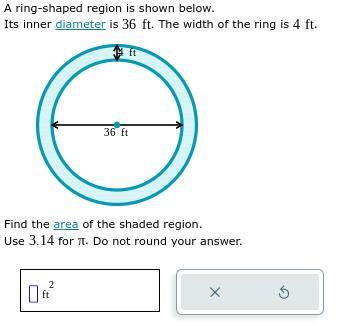 It is given that inner diameter is 36 ft and width of the ring is 4 ft
