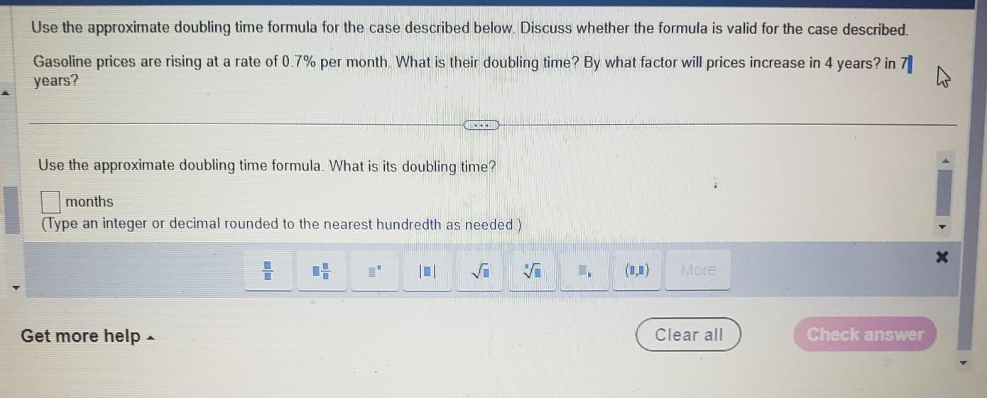 The doubling time after 4 and 7 years is 400 months and 700 months respectively