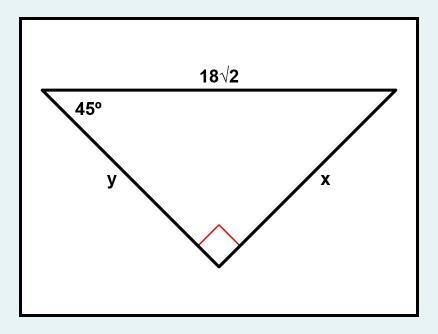 We also know that the hypotenuse (the side opposite of the 90° angle) is 18√2.