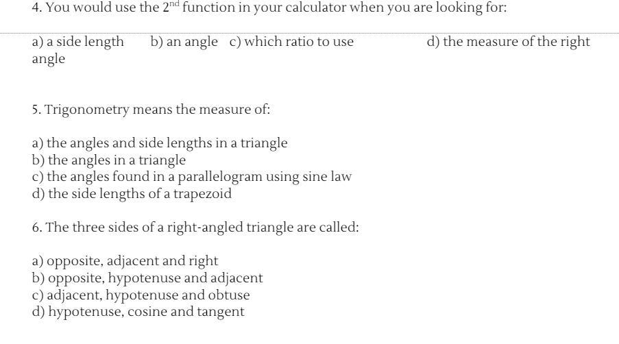6. b) opposite, hypotenuse and adjacent