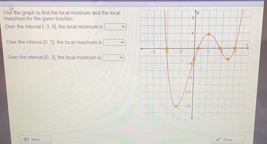 This means that the local minimum on the interval [-3, 0] is -16
