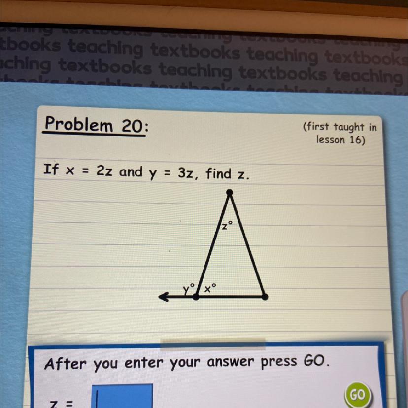 Since angles x and y are supplementary, you know that they add up to 180 degrees.