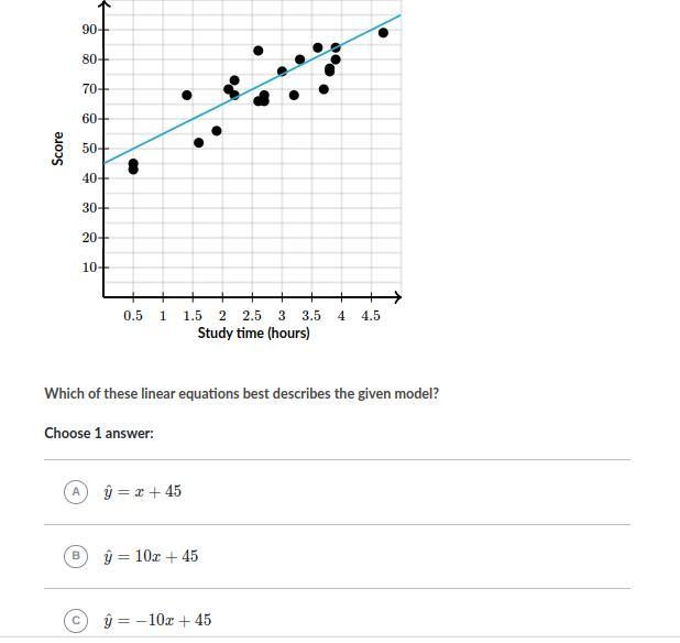 Part 1) Option B. y = 10x + 45