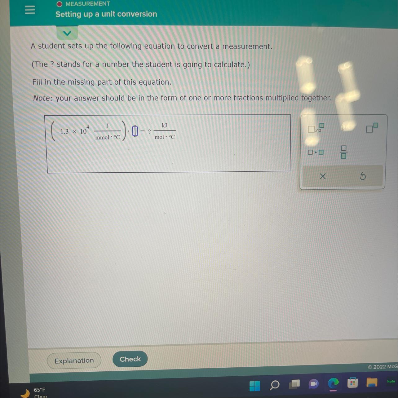 We have the following chemical equation: