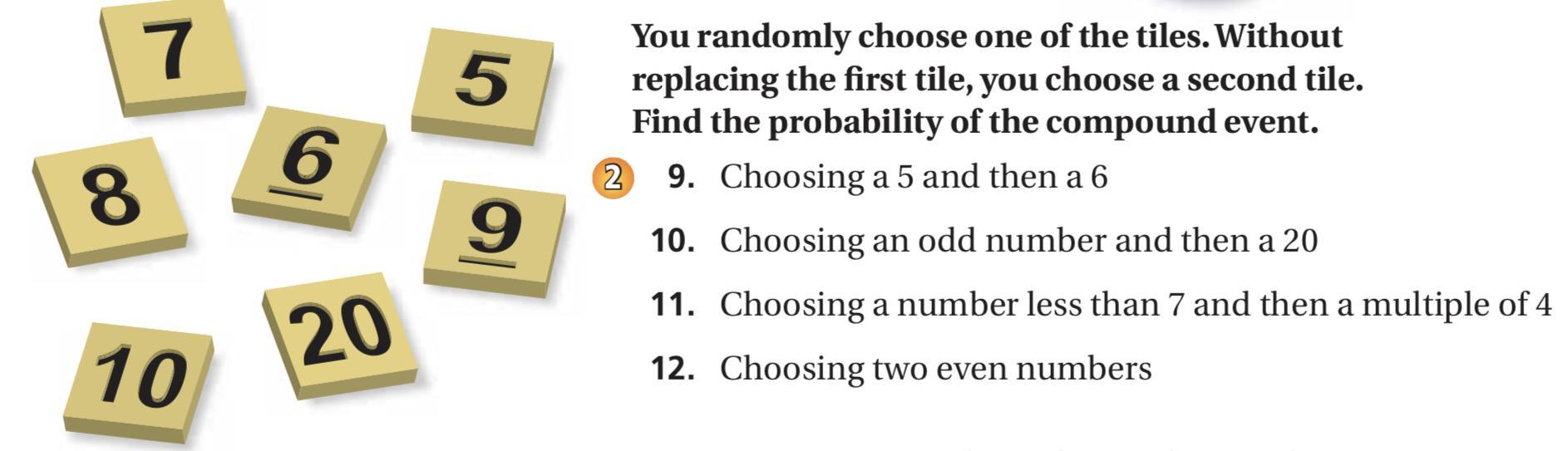 5 then 6: Among the 42 ways 2 tiles can be drawn, there is only one that is the required sequence: P(5,6) = 1/42.