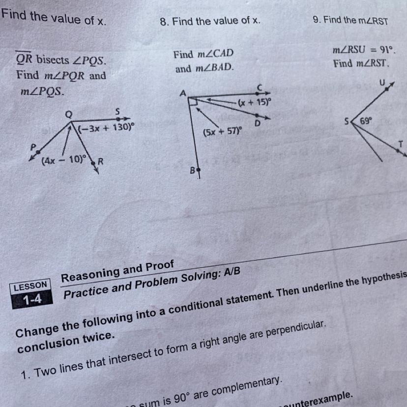 ⇒ m∠PQR = 4(20) - 10 = 70°