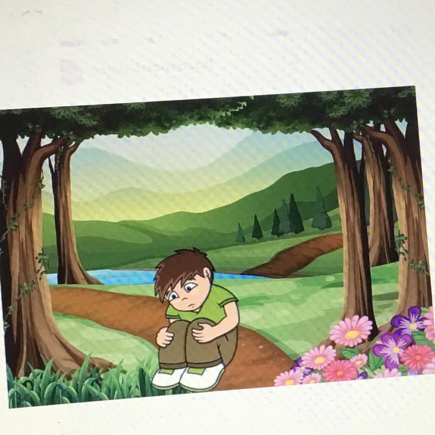A boy in the forest near a lake
