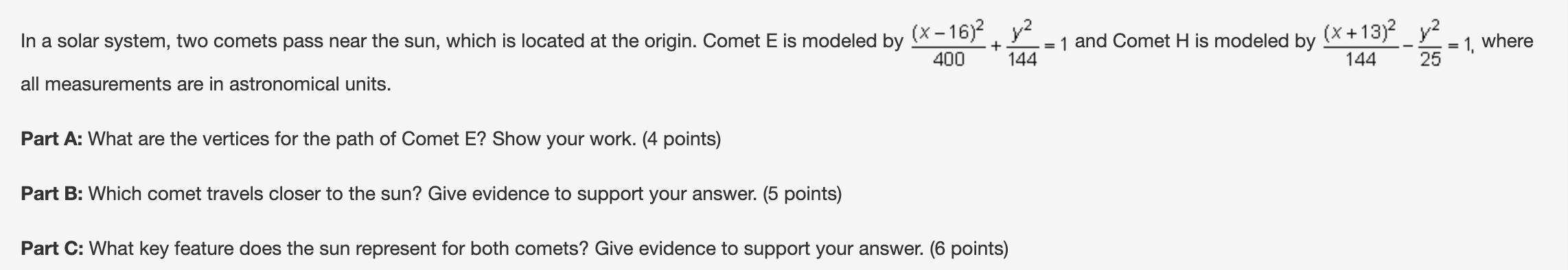 The sun represents one of the foci of both Comet E and Comet H.