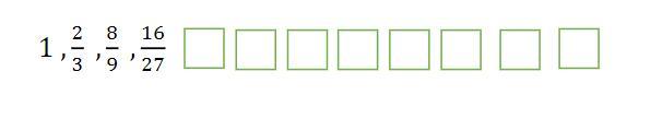2/3, 8/9, 16/27, 64/81, 128/243, 512/729, 2048/2187, 4096/6516, 16384/19683, 32768/59049, 131072/177147.