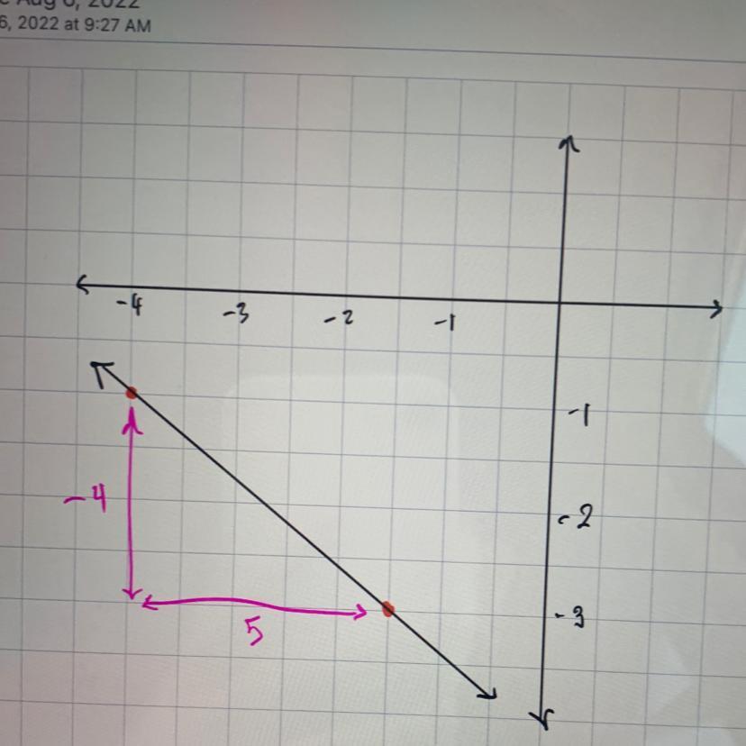 The slope of the line perpendicular to the line joining E and F is 4/7. The orthocenter is perpendicular to the line joining E and F and passes through vertex D(0, 0). The equation is hence: