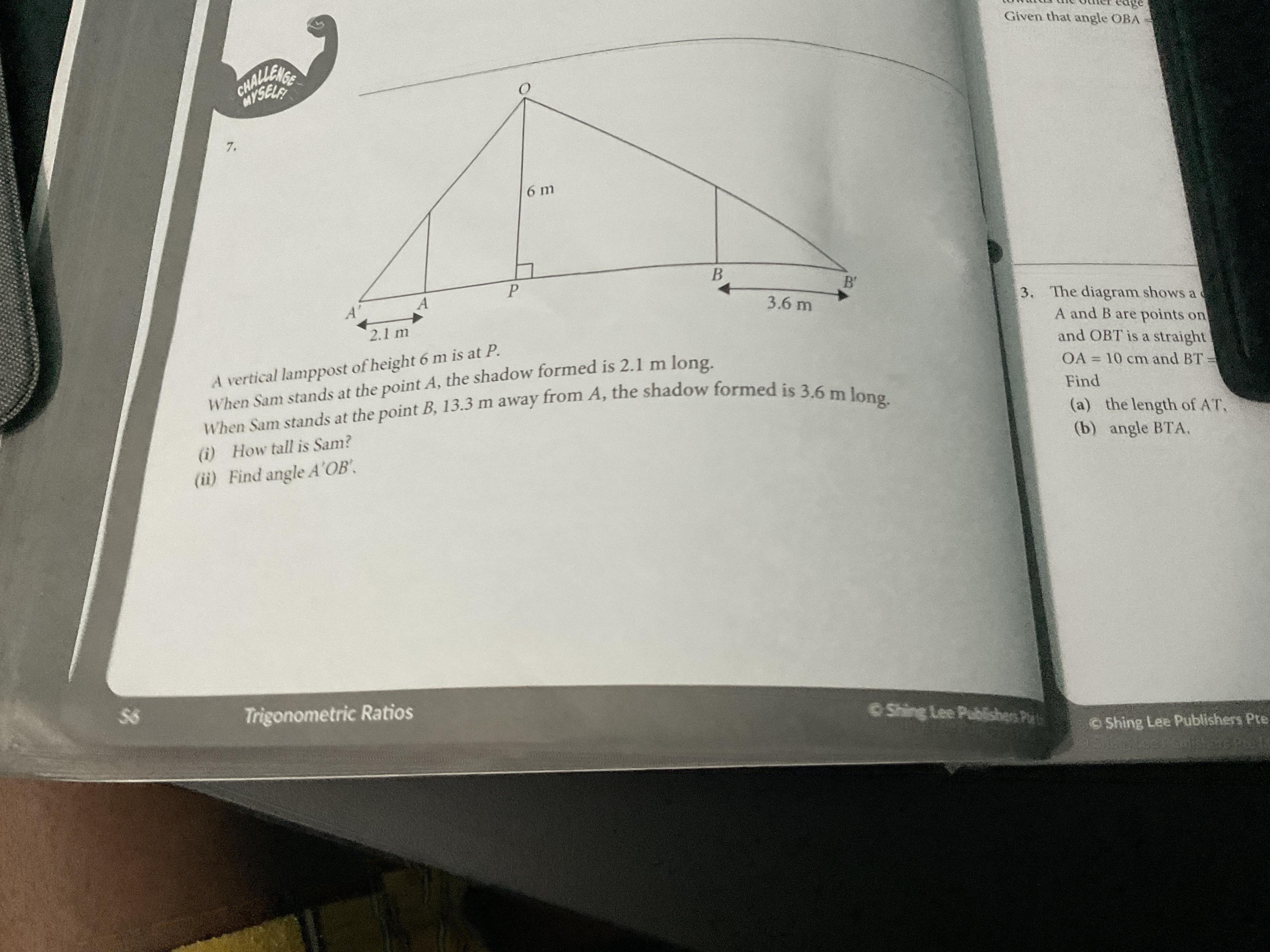 <A'OB' = 180 - tan‐¹(1.8/2.1) - tan‐¹(1.8/3.6)