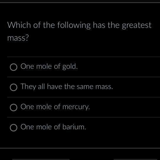 In this case, one mole of mercury has the greatest mass.