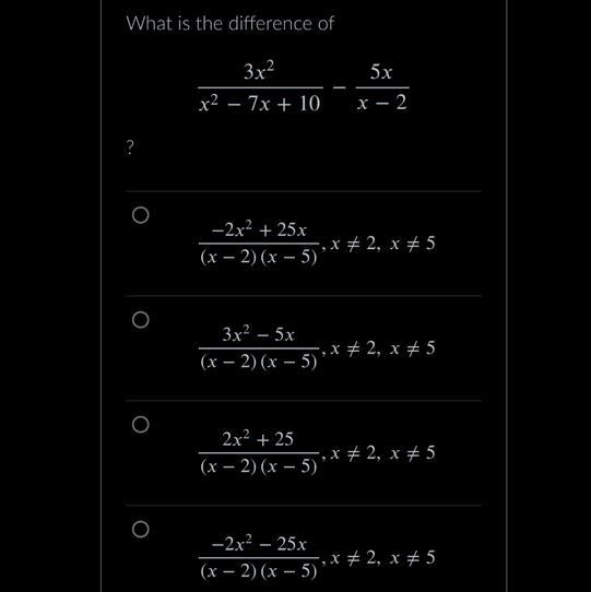 ⇒1/(x-2) [(3x²-5x²+25x)/(x-5)]