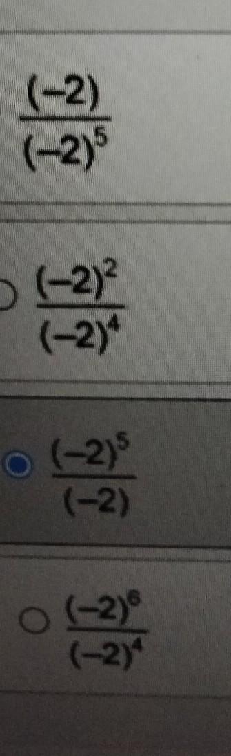 Hence, the expression that is equivalent to (-2)^4/(-2)^2 is (-2)^6/(-2)^4