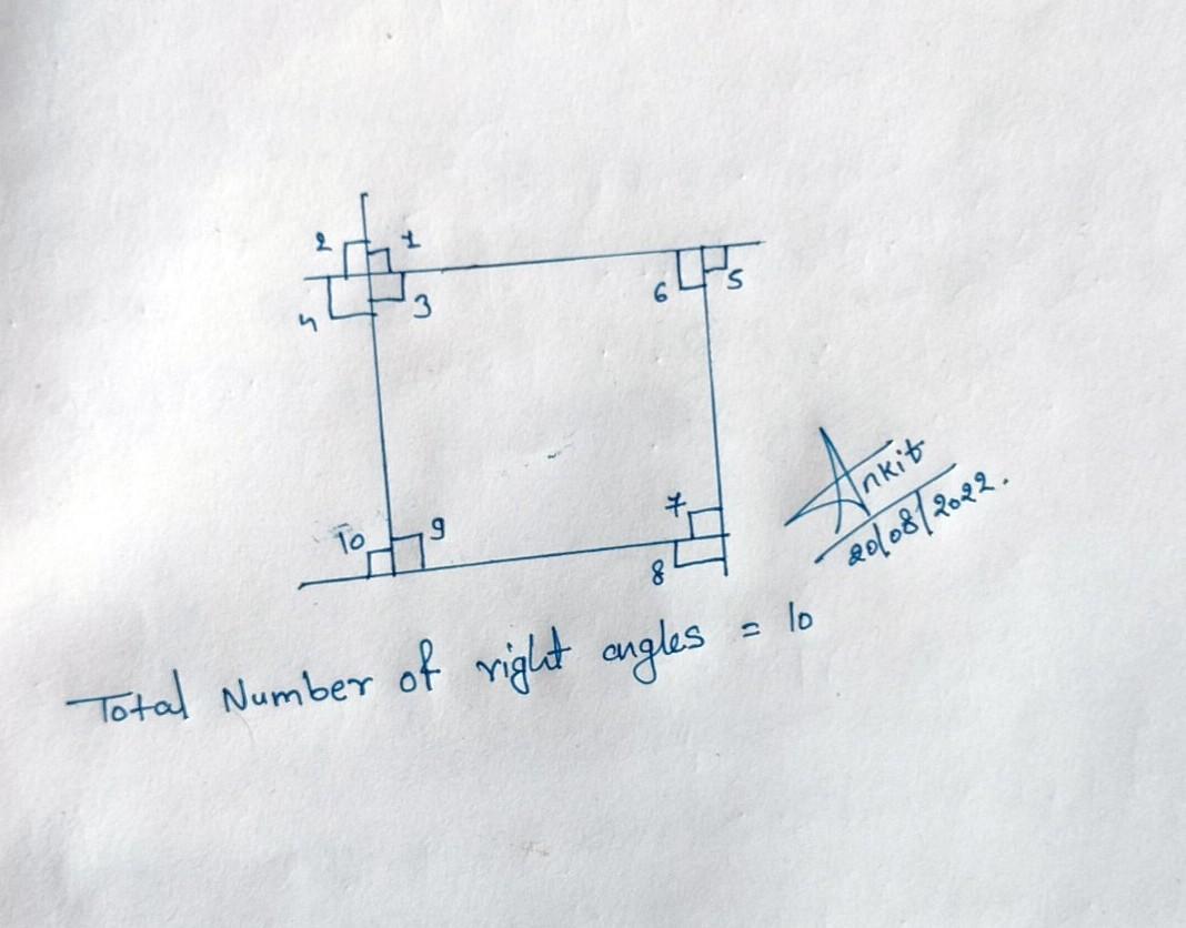 There are total 10 right angles in the given diagram, hence option (b) is correct match.