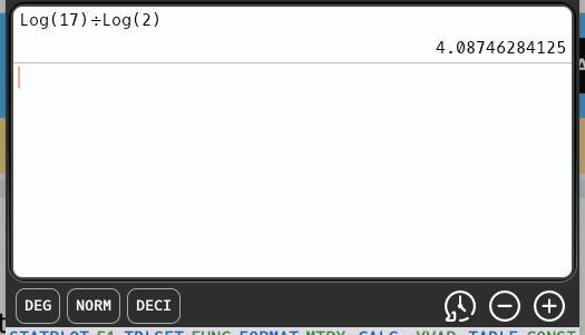 log₂(17) = log(17)/log(2) . . . . . . using logs to the same base