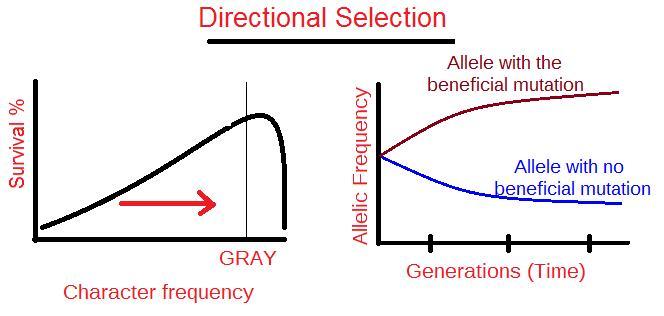 Directional selection increases in the proportion of individuals with an extreme phenotypic trait, in this case, the color of the organisms. This selection presents more frequently in those cases in which interactions between living organisms and the environment modify in the same direction.