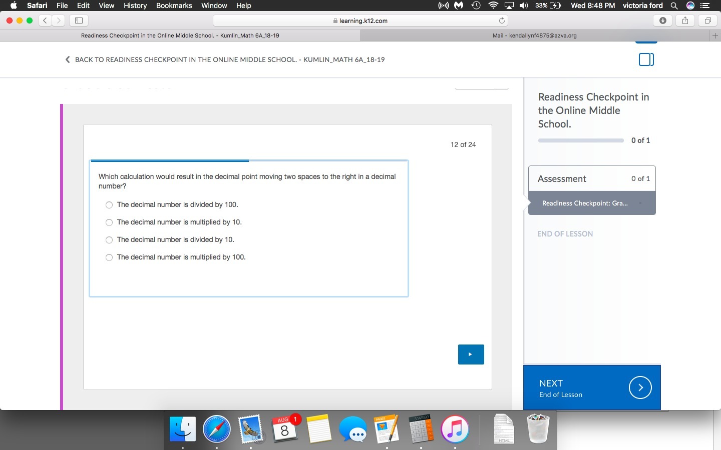 So answer is fourth option when we multiply decimal number by 100, it will move two spaces to the right side.