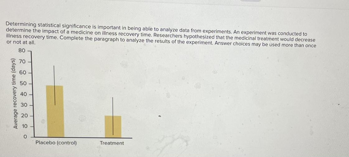 The following graphs display several data sets that illustrate how medication affects how quickly you recover. Each graph with a statistically significant distinction between the placebo and the experiment should be clicked.