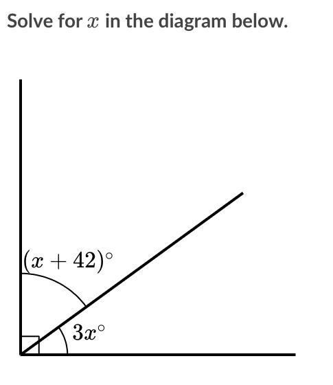 <u>x + 42</u> + <u>3x</u> = 90. ignore the parenthesis. they're just for clarification. then we will solve for x!