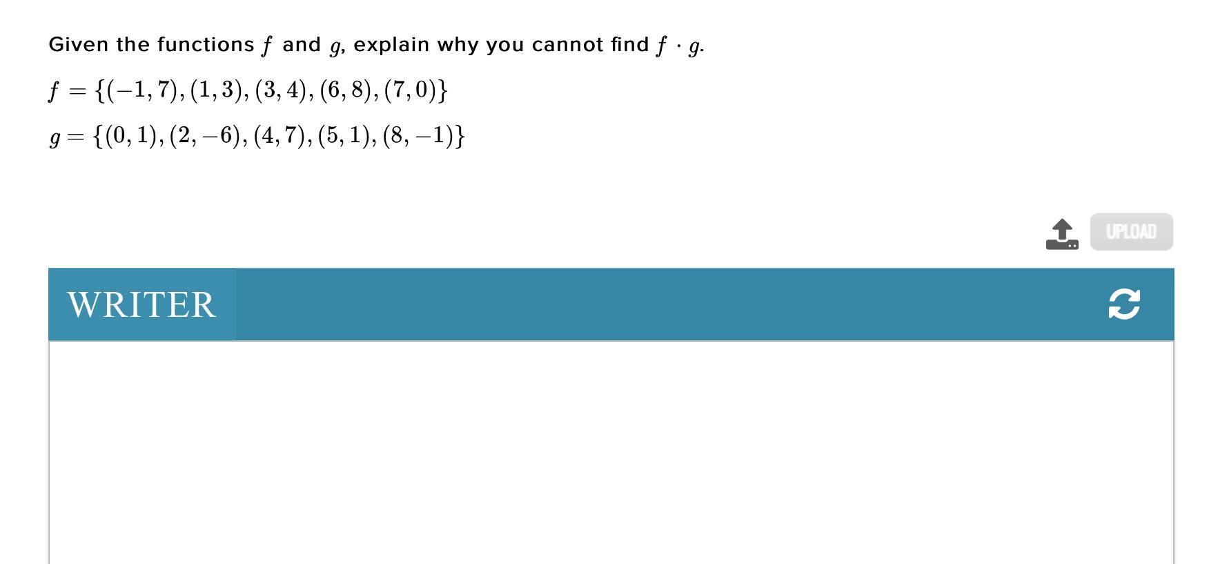 None of the inputs in the table of f(x) appears in the table of g(x), then we can't write the product between these two functions.