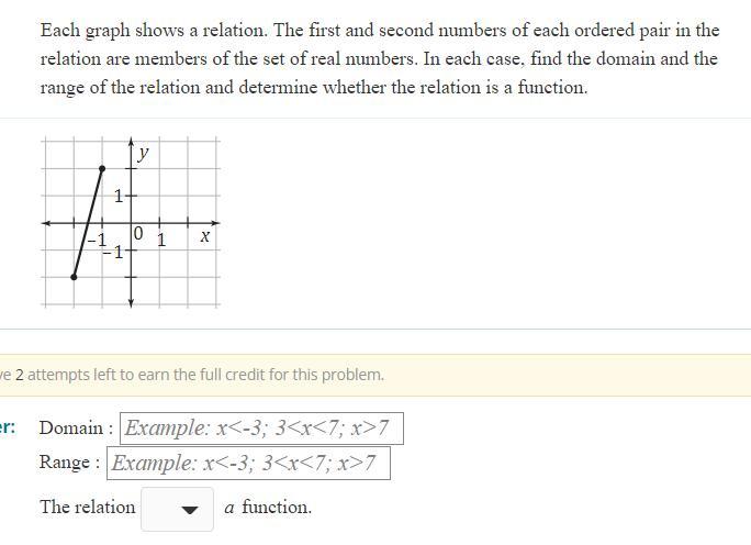 The domain of the relation is of -2 ≤ x ≤ -1.