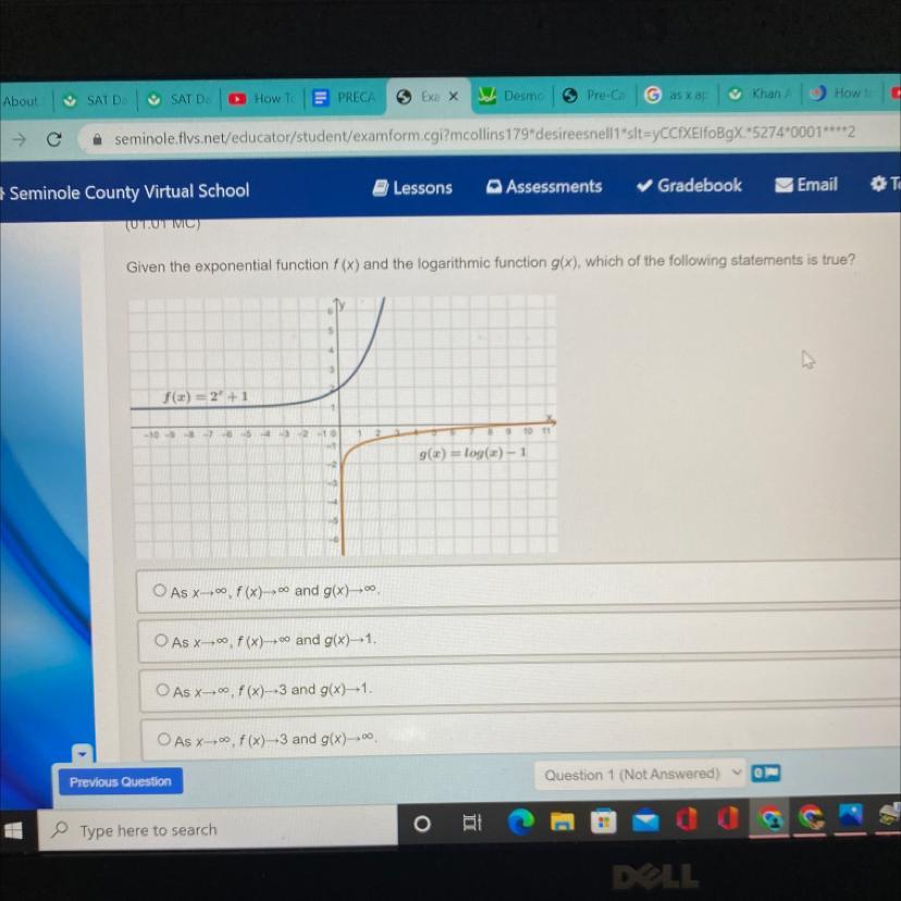 Given the exponential function f(x) and the logarithmic function g(x) the true statement is given as