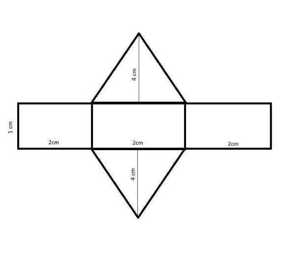 If the area of the triangle and the rectangle is 4 square cm and 2 square cm. Then the total surface area of the triangular prism will be 14 square cm.