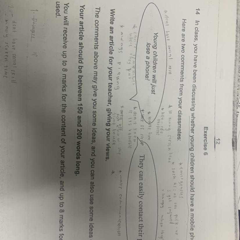 We can see that an article on whether young children should have a mobile phone is seen below: