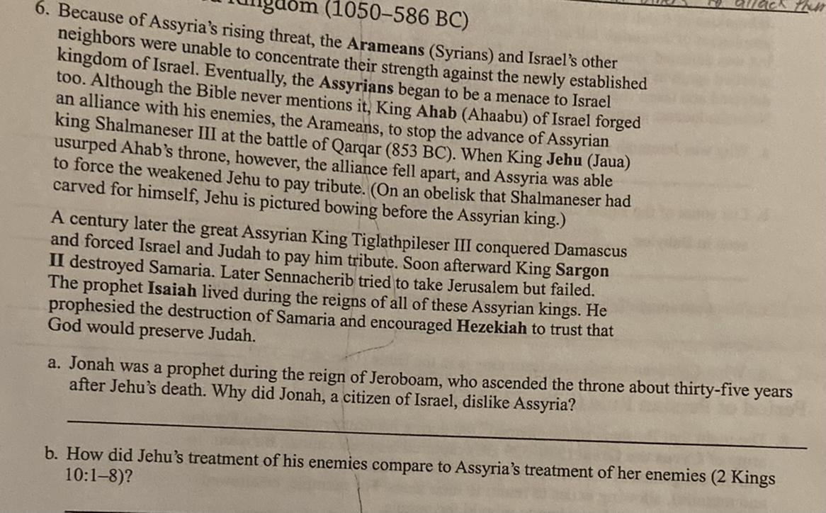 <h3> How did Jehu's treatment of his enemies compare to Assyria's treatment of her enemies (2 Kings 10:1-8)?</h3>