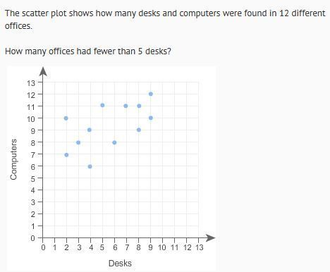 so by looking at the scatter plot we could see that the five points are before 5 on the horizontal axis i.e. we have to count all those points such that the desk are less than 5 i.e. ( when the desks are 0,1,2,3 and 4).