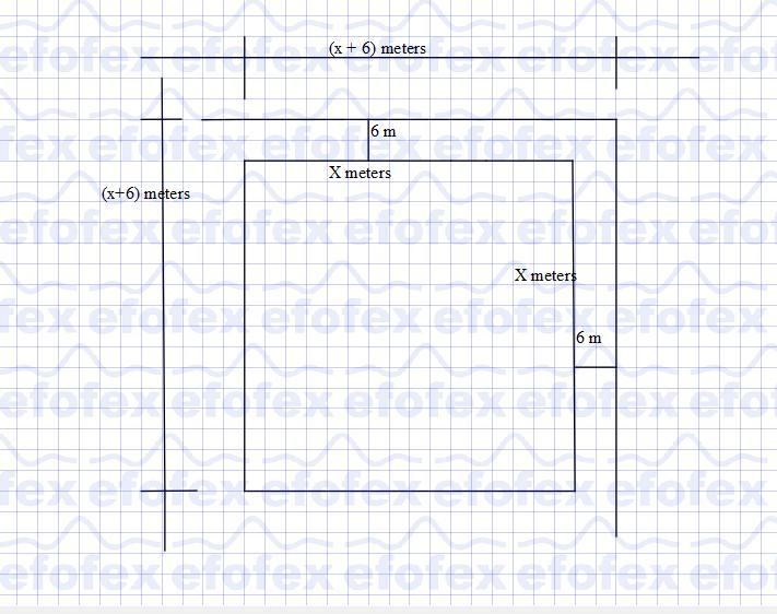 Each side of the square is x meter is length and a road of 6 meter wide is situated along the two adjacent side of the square.