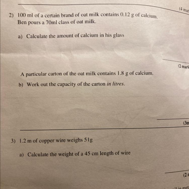 2 a) The amount of calcium in Ben's glass is 0.084 g