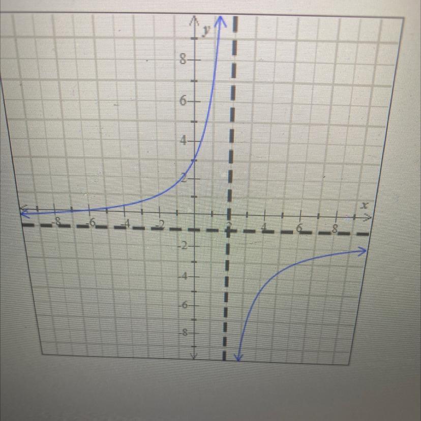 Since we have a vertical asymptote that is x = 2 and we don´t have any more vertical asymptote the domain will be all real numbers except the value of the asymptote. So, the domain is